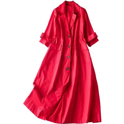 Áo gió đỏ nữ dài phần phong cách Anh 2020 Phụ nữ mùa xuân mới phong cách nước ngoài áo khoác mỏng - Trench Coat