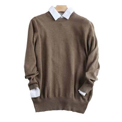 Áo len cashmere nguyên chất nam cổ tròn ấm áp áo len màu tinh khiết áo len cashmere dày đan lỏng áo len mùa đông - Áo len