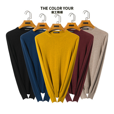 Áo len cổ tròn nam áo len mỏng phần cơ sở áo len màu rắn dài tay áo len thanh niên áo len nam giản dị - Áo len