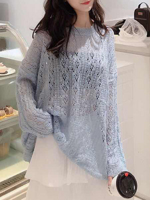 Áo len dệt kim rỗng áo thun nữ mỏng phần áo len mùa xuân băng lụa chống nắng lỏng lẻo áo khoác ngoài áo gió lười biếng - Đan Cardigan