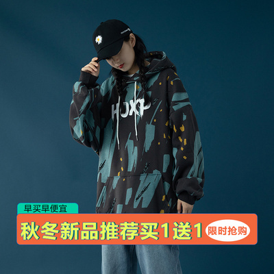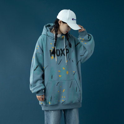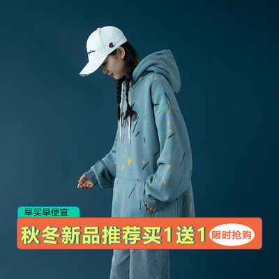 Áo len lót bông in phụ nữ cộng với nhung dày 2020 mùa thu và mùa đông mới có mũ trùm đầu Hàn Quốc áo khoác rộng quần áo phụ nữ - Áo len