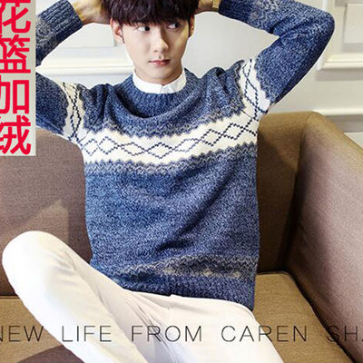 Áo len nam mùa đông cộng với áo len dày nhung ấm áp dành cho giới trẻ Hàn Quốc - Áo len