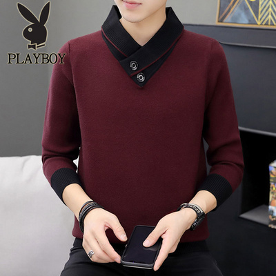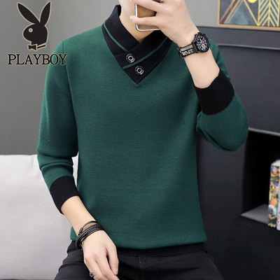 Áo len nam mùa thu đông mùa đông xu hướng Hàn Quốc áo len cao cổ nam cộng với áo lót nhung mùa đông - Áo len cổ tròn
