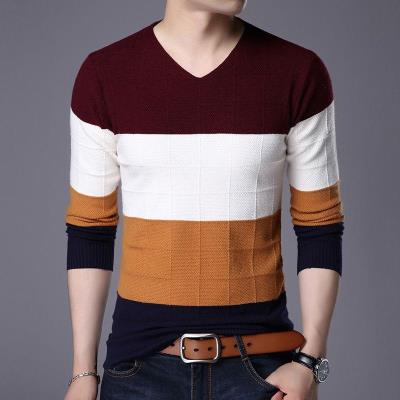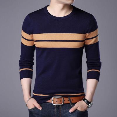 Áo len nam thanh niên Hàn Quốc sọc nam áo len mới màu rắn chạm đáy áo len nam mùa xuân và mùa thu trung niên - Áo len
