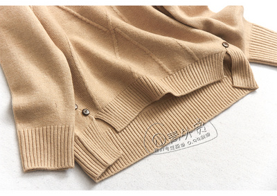 Áo len nữ mùa đông mới hình học tròn 34 nút trang trí cổ áo hoang dã áo thun dài tay áo len nữ - Áo len