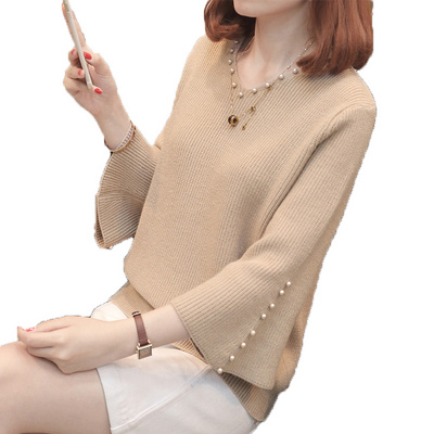 Áo len nữ mùa xuân mới 2020 mùa thu Áo len nữ đính cườm Áo len cổ chữ V ngắn lỏng của Hàn Quốc - Áo len