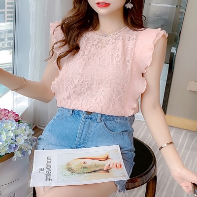 Áo sơ mi voan ren áo sơ mi không tay áo sơ mi nữ hè 2020 phong cách mới phổ biến phong cách hàn quốc hoang dã tất cả các kết hợp - Áo sơ mi chiffon ren