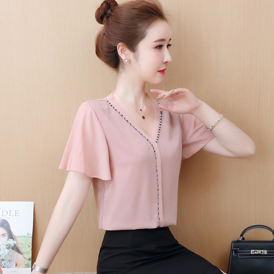 Áo sơ mi voan tay ngắn nữ mùa hè 2020 Áo thun nữ thời trang áo sơ mi nước ngoài nữ thiết kế phù hợp - Áo sơ mi chiffon ren