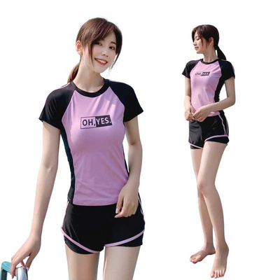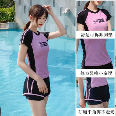 Áo tắm của phụ nữ hai mảnh hai mảnh chia đôi bảo thủ mỏng che bụng sinh viên cỡ lớn suối nước nóng Hàn Quốc áo tắm cổ tích fan hâm mộ - Bộ đồ bơi hai mảnh