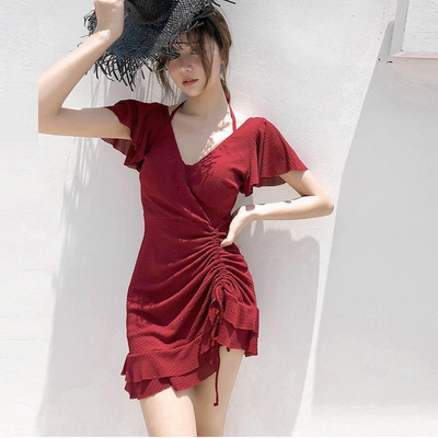 Áo tắm một mảnh kiểu váy mới bán chạy nhất giấu bụng, dáng mỏng, khoét cổ, màu trắng thời trang, đồ bơi hàn quốc suối nước nóng size lớn - Bộ đồ bơi One Piece