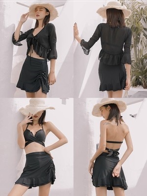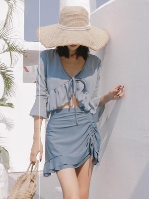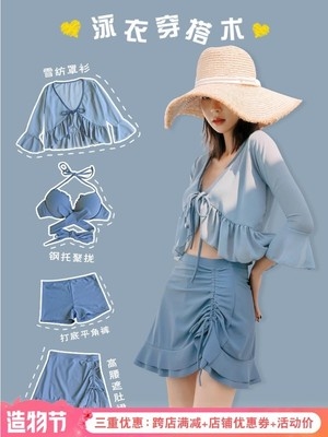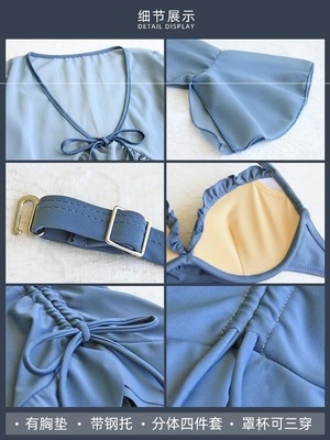 Áo tắm mùa hè nữ bảo thủ váy xẻ tà gợi cảm bikini bốn mảnh thép hỗ trợ tập hợp - Bộ đồ bơi hai mảnh