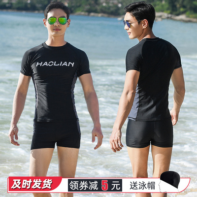 Áo tắm nam phù hợp với lỏng cộng với kích thước chia quần lót boxer quần bơi chống nắng học sinh đào tạo thanh niên đồ bơi - Nam bơi đầm