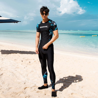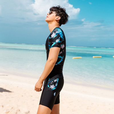 Áo tắm nam xẻ tà ngắn tay quần dài quần bơi năm điểm chống nắng nhanh khô Bộ đồ bơi nam dài trung - Nam bơi đầm