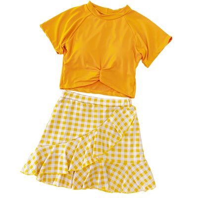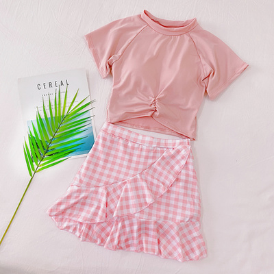 Áo tắm nữ bạn gái sinh viên cô gái bảo thủ nhỏ tươi tắn dễ thương váy xẻ cao eo phẳng góc trong áo tắm hàn quốc - Bộ đồ bơi hai mảnh