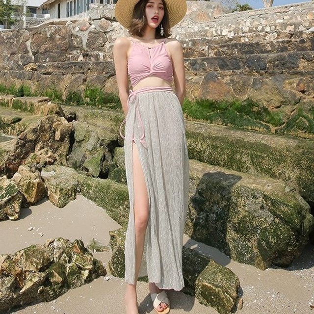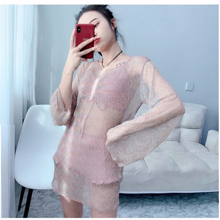 Áo tắm nữ mới lưới màu đỏ giống đoạn trong gió siêu lửa váy cổ tích áo chống nắng mùa xuân nóng bơi mặc đi nghỉ bãi biển - Bộ đồ bơi hai mảnh