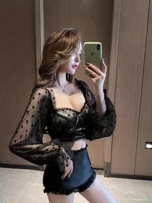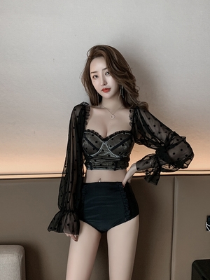 Áo tắm nữ suối nước nóng bảo thủ xẻ tà dài tay giảm béo trong lưới màu đỏ 2020 mới hợp thời trang cổ tích người hâm mộ đồ bơi les - Bộ đồ bơi hai mảnh