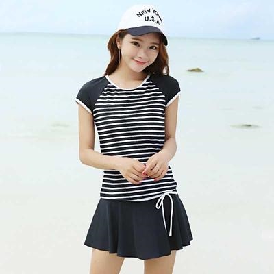 . Áo tắm nữ xẻ tà che bụng giảm béo áo tắm sinh viên mới 2020 áo tắm ngắn tay hàn quốc nhỏ tươi ấm áp - Bộ đồ bơi hai mảnh