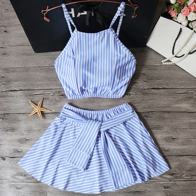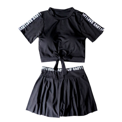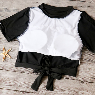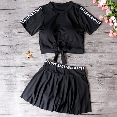 Áo tắm retro nữ xẻ tà ngắn tay cao eo bảo thủ giảm béo Hàn Quốc suối nước nóng nhỏ hương đồ bơi học sinh - Bộ đồ bơi hai mảnh