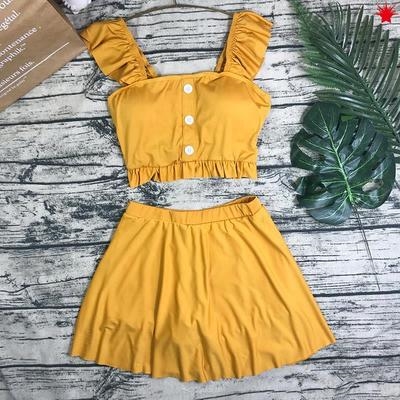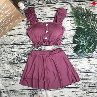 Áo tắm tách nhỏ tươi nữ mỏng dễ thương bảo thủ váy boxer sinh viên rắn màu sexy bikini - Bộ đồ bơi hai mảnh