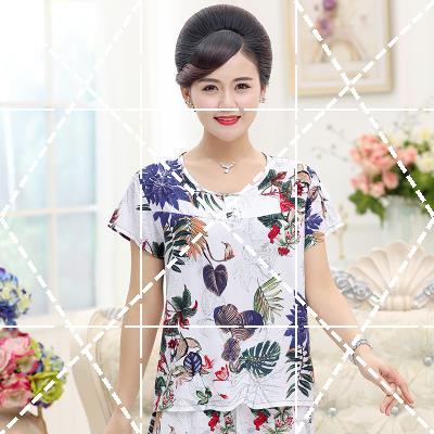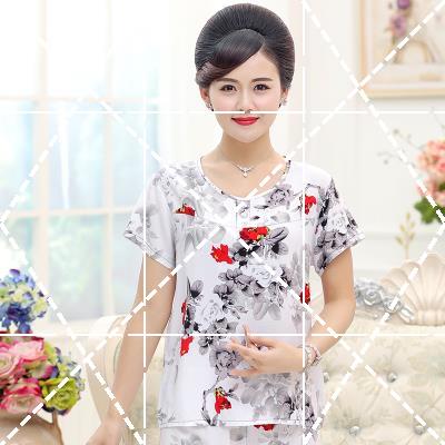 Áo thun cotton lụa cho người trung niên và người già, đồ ngủ cotton tinh khiết, đồ bộ nữ mặc nhà mùa hè, áo thun tay ngắn rayon size lớn. - Pyjama