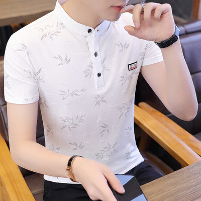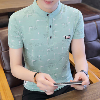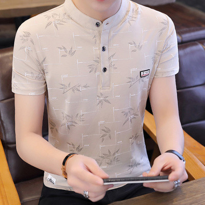 Áo thun nam tay ngắn mùa hè nam phong cách mới tinh khiết cotton đứng cổ áo giản dị Phong cách Hong Kong áo sơ mi nam thanh niên áo lót xu hướng - Polo