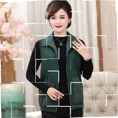 Áo vest của phụ nữ trung niên và cao tuổi Phụ nữ mới mùa xuân và mùa thu áo mẹ in áo vest bà ngoại áo ghi lê ông già. - Áo vest