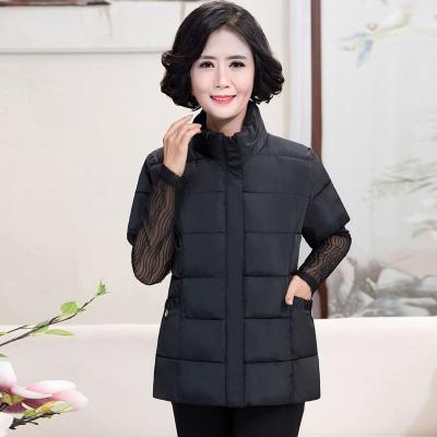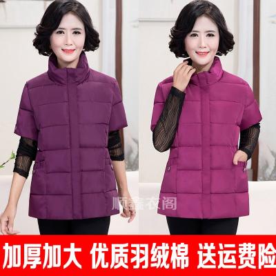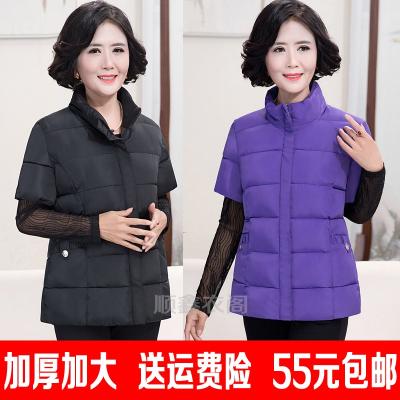 Áo vest nữ chất béo cotton mẹ cỡ lớn vest nữ trung niên và người già áo vest dày tay ngắn xuống một nửa bông - Áo vest