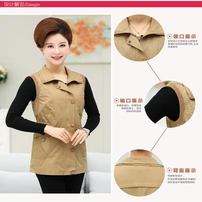 Áo vest nữ mùa xuân mới cho phụ nữ trung niên và cao tuổi Áo ghi lê mỏng cho nam trung niên áo khoác cotton ngắn - Áo vest