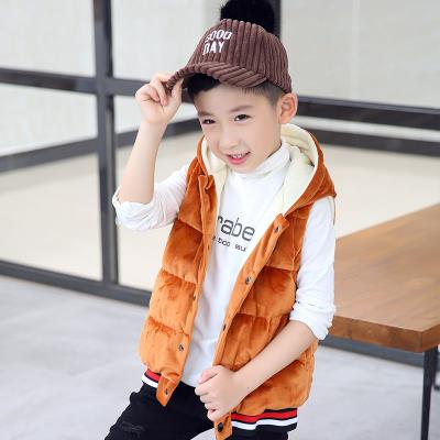Áo vest trẻ em mặc ngoài mùa thu đông cộng với nhung tây phong cách bé gái vàng nhung vest dày trùm đầu bé trai áo vest chần bông - Áo ghi lê
