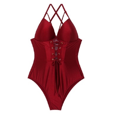 Âu Mỹ bảo thủ bikini một mảnh gầy gợi cảm áo tắm ren tam giác ngực tụ hội nữ áo tắm che suối nước nóng - Bộ đồ bơi One Piece