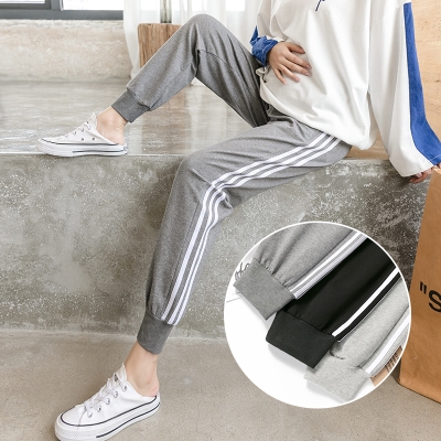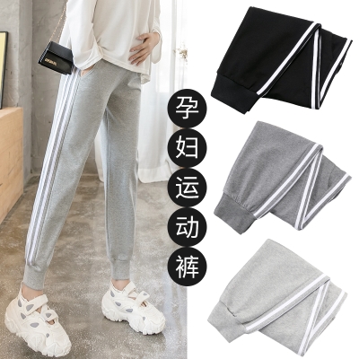 Bà bầu quần tụt quần ống rộng mặc ngoài vào mùa thu bà bầu nâng bụng bầu quần cạp trễ thời trang thu đông quần thể thao mùa thu - Phụ nữ mang thai quần / quần bụng