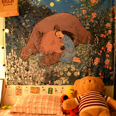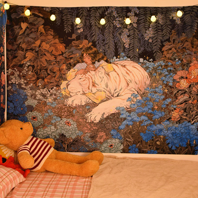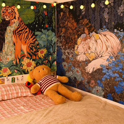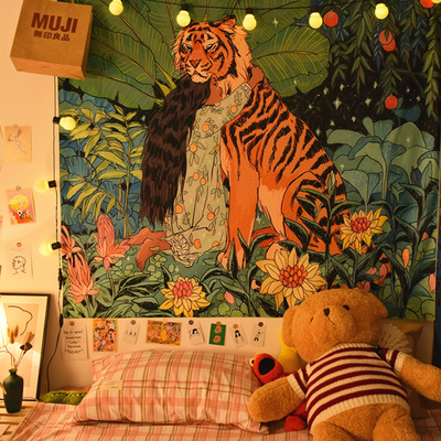 Bắc Âu ins Tiger cô gái quá khổ nền vải lưới màu đỏ sống trang trí tường thảm trang trí đầu giường phòng ngủ phòng ngủ rèm - Tapestry