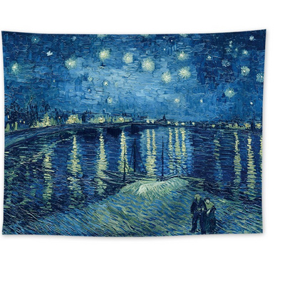 Bắc Âu Van Gogh bầu trời đầy sao treo vải nền vải phòng ngủ trang trí tường thảm trang trí trong khăn trải bàn vải rèm để gửi ánh sáng sao - Tapestry