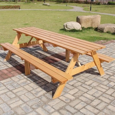Bãi biển một bàn và ghế ngoài trời chống ăn mòn đồ nội thất gỗ rắn bàn ăn và ghế kết hợp ban công sân vườn giải trí bàn ghế một mảnh - Bàn ghế ngoài trời / sân