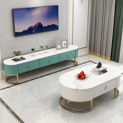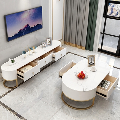 Bàn cà phê bằng đá cẩm thạch tối giản hiện đại kết hợp tủ TV kết hợp ánh sáng Bắc Âu sang trọng với đồ nội thất phòng khách màu đỏ ròng sang trọng bộ tủ sàn phong cách Hồng Kông - Bộ đồ nội thất