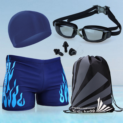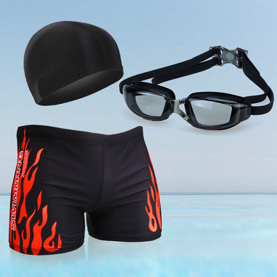Bán chạy quần bơi nam + mũ bơi + kính bơi góc phẳng suối nước nóng kích thước lớn bộ đồ bơi thời trang thiết bị kính bơi sáu thực - Nam bơi đầm