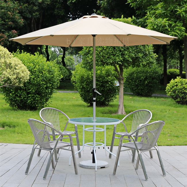 Bàn ghế inox cafe sân vườn ngoài trời có ô che nắng kết hợp bàn ghế thư giãn ngoài trời Bộ dù che nắng - Bàn ghế ngoài trời / sân