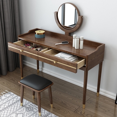Bàn trang điểm gỗ chắc chắn Nội thất bắc âu bàn trang điểm gỗ óc chó đơn giản tần bì bàn trang điểm hiện đại nhẹ nhàng sang trọng bàn trang điểm gỗ đồng - Bộ đồ nội thất