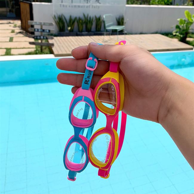 Bé gái Bộ đồ bơi Không thấm nước Chống sương mù HD Lặn Tour dành cho trẻ em Kính bơi Mũ bơi Bé trai Thiết bị kính bơi khung lớn - Goggles