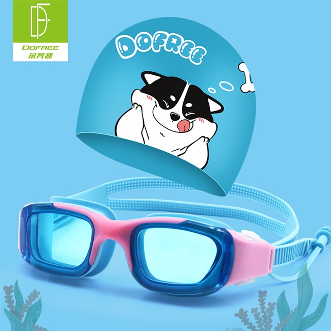 Bé gái HD Kính bảo hộ trẻ em Dofree Chống thấm nước và chống sương mù Bé trai Học bơi Kính bảo hộ bơi Bộ mũ bơi - Goggles