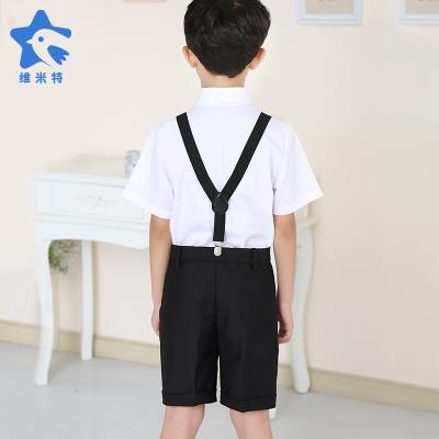 Bé trai ngắn tay áo sơ mi trắng tinh khiết bộ đồ đen quần short phù hợp với mùa hè quần áo trẻ em áo sơ mi - Váy trẻ em