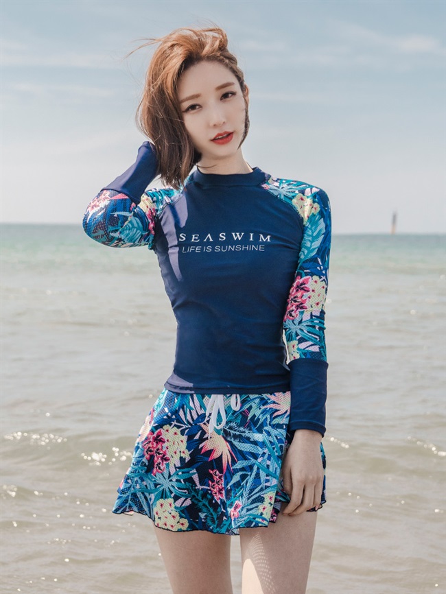 Bình thường bảo thủ áo tắm áo tắm của phụ nữ thể thao cổ cao dài tay dài bụng váy sinh viên kích thước lớn chia hai mảnh phù hợp - Bộ đồ bơi hai mảnh