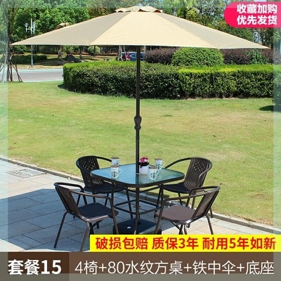 Bộ bàn ghế ngoài trời sân vườn dù mây kết hợp bàn ghế ngoài trời ban công giả mây bộ bàn hình chữ nhật gấp - Bàn ghế ngoài trời / sân