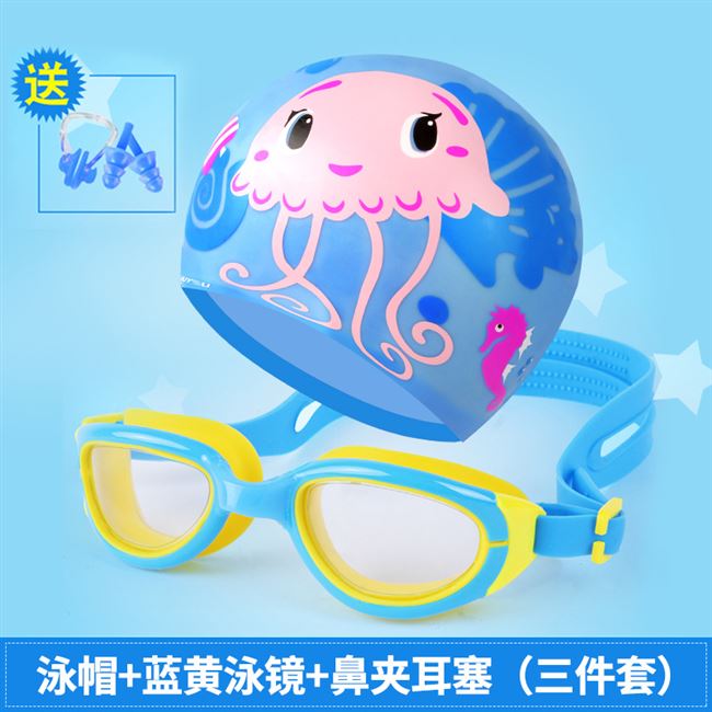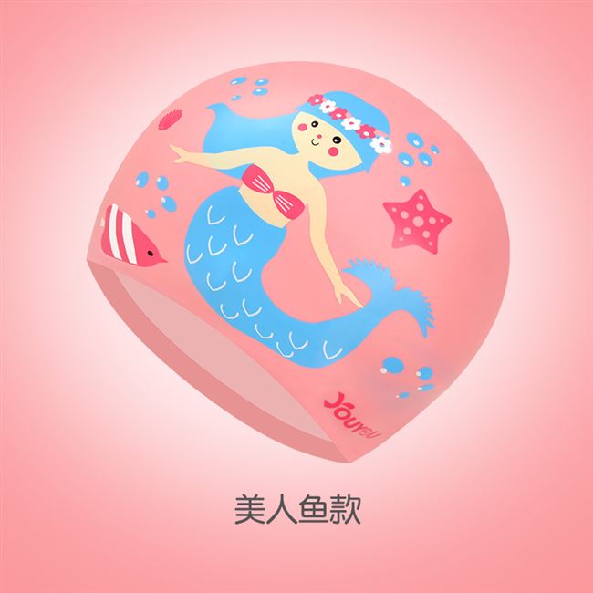 Bộ dễ thương bảo vệ tai trẻ em mũ bơi silicone cho phụ nữ và nam giới với mái tóc dài không thấm nước đầu kính bơi in thời trang phổ quát - Mũ bơi