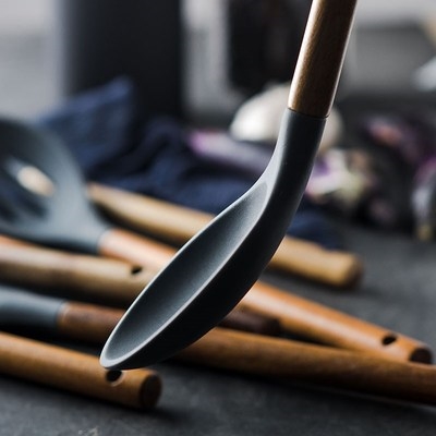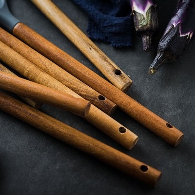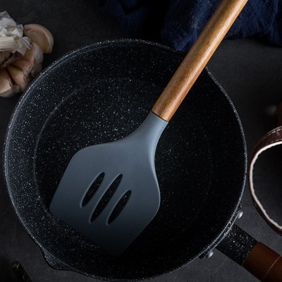 Bộ đồ dùng nhà bếp silicone tay cầm bằng gỗ thìa hoàn chỉnh bộ dao nấu ăn gia đình bảy món chống dính chịu nhiệt độ cao Bộ đồ dùng nấu ăn chống dính hoàn chỉnh - Phòng bếp