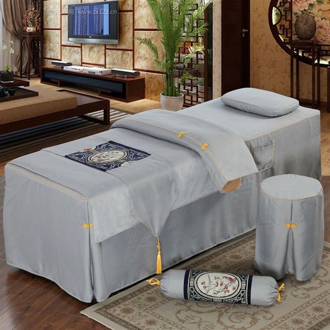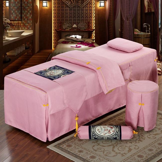 . Bộ đồ giường cao cấp làm đẹp cao cấp Bộ bốn mảnh màu xanh đậm cotton Châu Âu đơn giản làm đẹp thẩm mỹ cơ thể massage giường có lỗ - Trang bị tấm