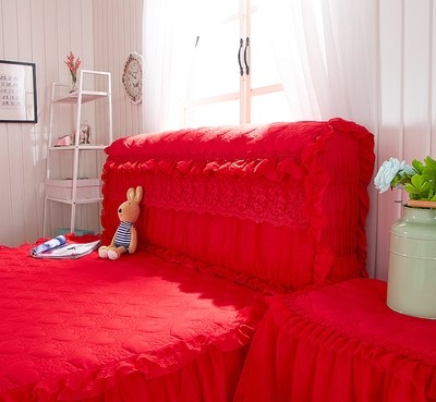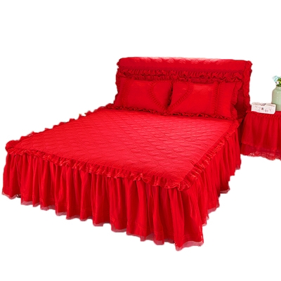 Bộ đồ giường đám cưới một mảnh ở nhà váy ngủ màu đỏ khách sạn bốn mảnh lễ hội nệm dày trải giường váy bông - Váy Petti
