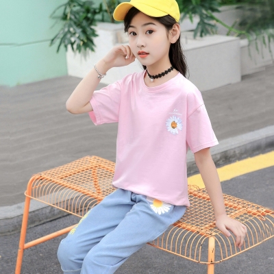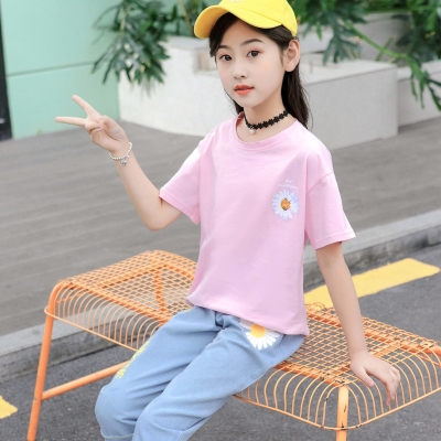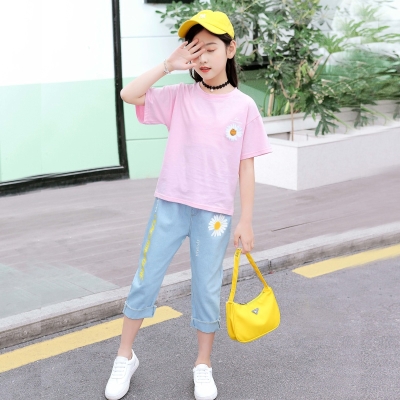 Bộ đồ mùa hè cho bé gái 2020 quần áo trẻ em sản phẩm mới quần áo trẻ em lớn của phụ nữ lưới màu đỏ nhỏ daisy phong cách phương tây bộ đồ thể thao trẻ em nữ - Khác