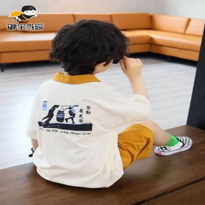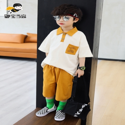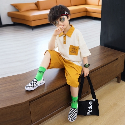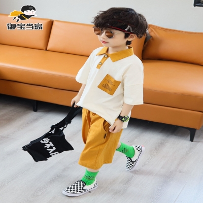 Bộ đồ ngắn tay bé trai mùa hè 2020 phong cách phương tây mới áo thun polo lớn trẻ em quần short hai mảnh xu hướng quần áo trẻ em - Khác