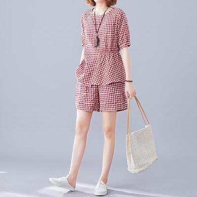 Bộ đồ ngủ cotton lụa cỡ lớn nữ mùa hè béo mm lỏng tay ngắn tay rayon hai mảnh phục vụ tại nhà có thể đi chơi - Giống cái